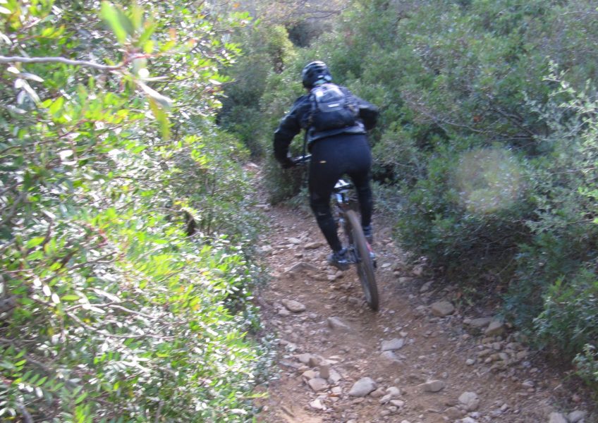 La partenza ha luogo sulla SP 3b Santa Severa Tolfa, al ponte del Rio Fiume. Bitumando si raggiunge l’incrocio con la strada comunale Nocchia – Femmina Morta – Casermetta Forestale e la si percorre fino ad arrivare al cancello posto a dx, per l’ingresso della Casermetta. Dopo averlo oltrepassato ci si spinge sull’altura di Acqua Tosta, dove comincia la prima adrenalinica discesa (di riferimento sono i tralicci dell’alta tensione). L’inizio da urlo è abbastanza flow, intervallato solo da qualche ingresso disagevole su roccia, ma non bisogna farsi ingannare, perché man mano che si va avanti è tutto l’opposto. Il percorso è abbondantemente difficoltoso, per i continui scavalchi su roccia, con gradoni ostici ed il sentiero che in vari tratti è incassato a mo’ di cunetta.