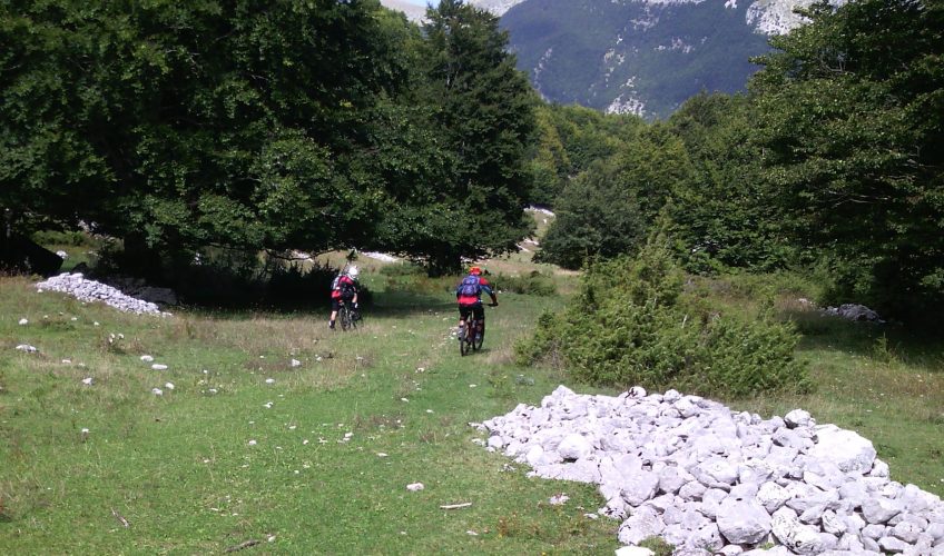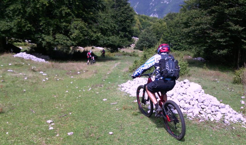 Superato il valico, proprio di fronte all’ingresso di Macchiarvana, si impegna un sentiero sulla dx, sent. F7, abbastanza dinamico (unica difficoltà della giornata) che in sottobosco scende nella vallata sottostante. Dalla valle Fredda si continua a scendere seguendo la segnaletica F4 e ugualmente dove è possibile, ci si allontana dalla traccia, per compiere passaggi vivaci.