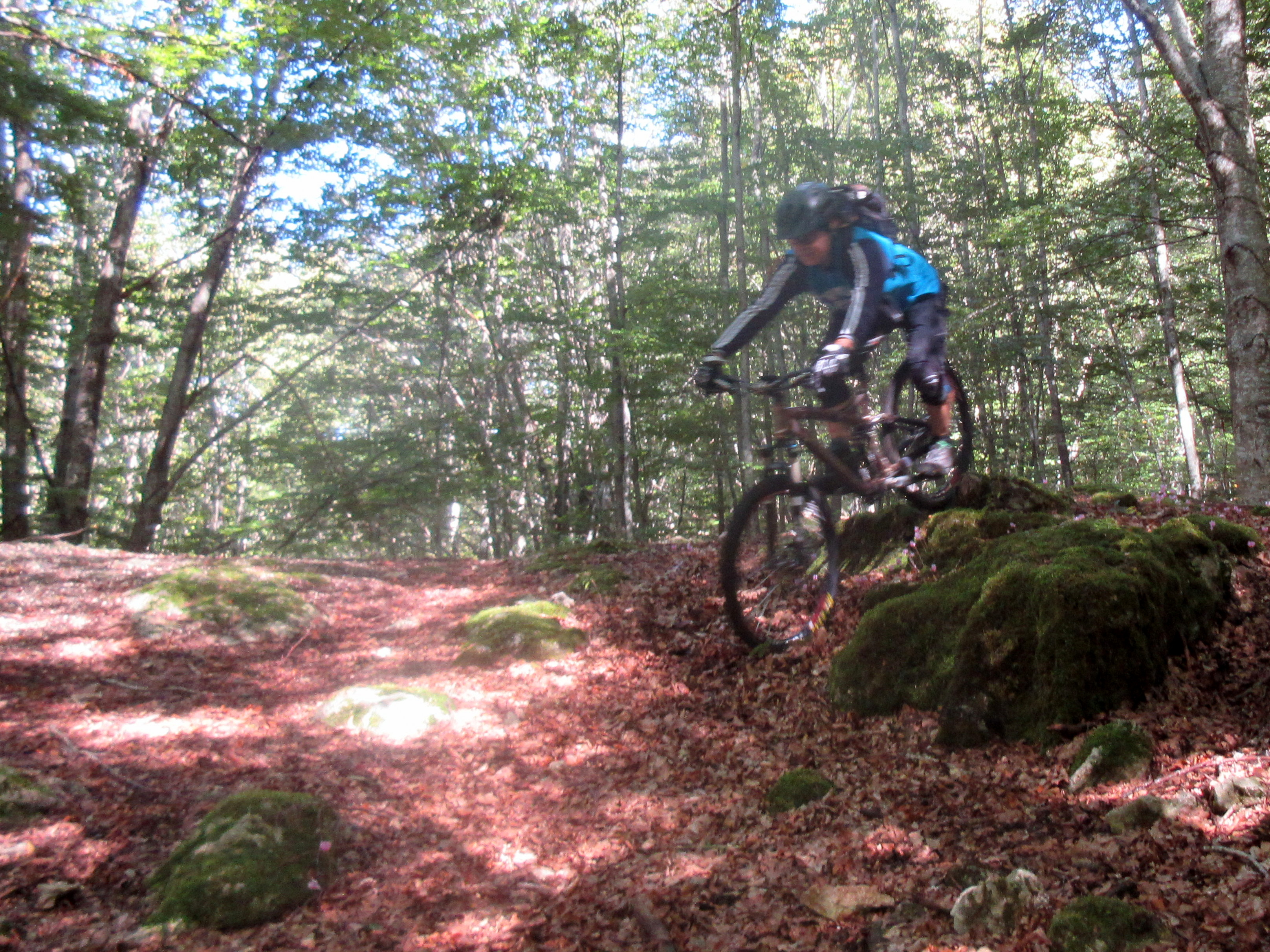 Dalla sorgente a spinta ci si spinge alla sella della Selvastrella, la vista d’insieme è spettacolare, un paesaggio aspro e suggestivo, con un smisurato panorama sulla lussureggiante vallata dove si snoda il percorso. Si prosegue scendendo su single track con fondo smosso, ed entrati nel bosco, si sfrutta uno sgarrupo roccioso per compiere un passaggio ostico, in ogni modo evitabile.