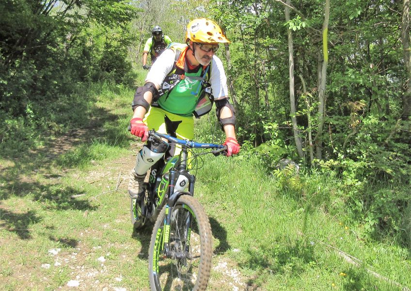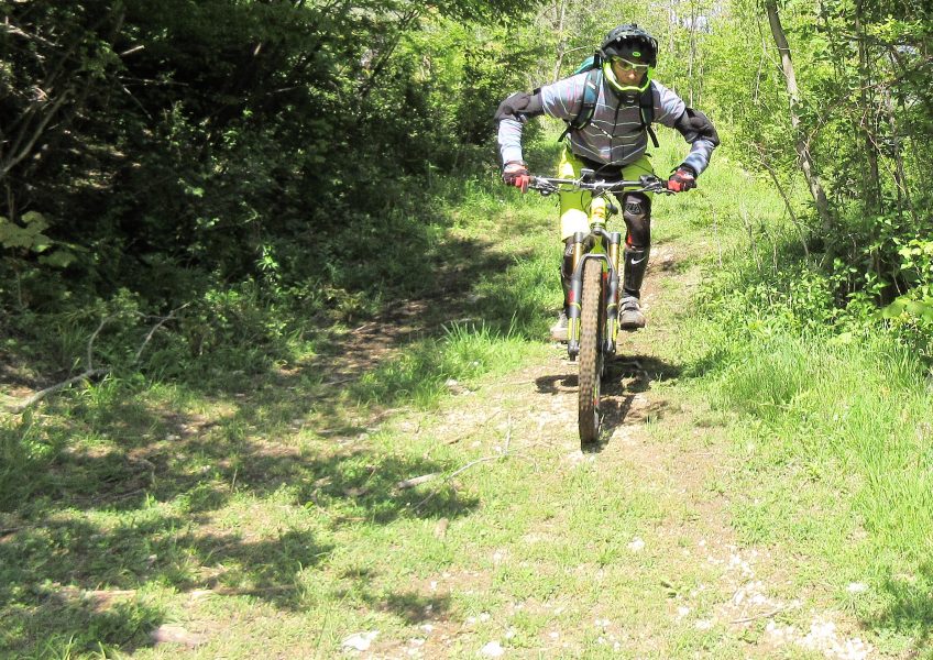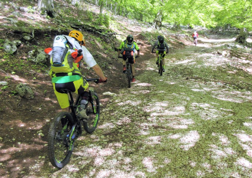 Ci si butta giù, per il la vallone di Sambucito, il single track, con classico fondo terroso di faggeta è caratterizzato da