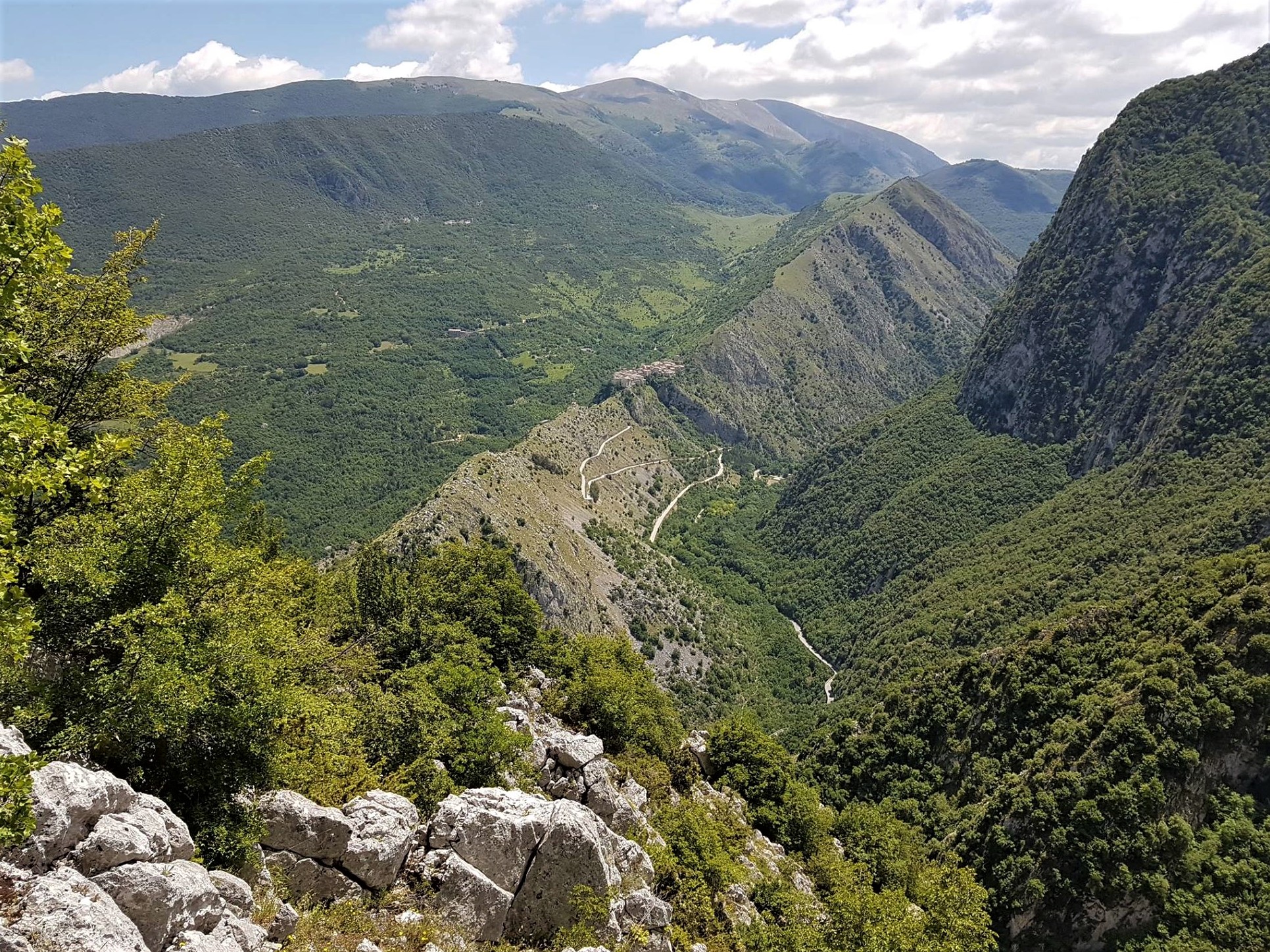 una sterrata il trail si placa scendendo ad Anversa degli Abruzzi. Ritrovandosi sotto le alte pareti verticali delle gole scavate dal Fiume Sagittario, non ci resta che prolungare il tour percorrere la strada fino al bivio per Castrovalva,