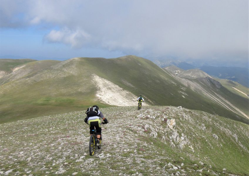 usciti sulla strada dell’Appennino Abbruzzese, poco sopra il paese di Antrodoco, dove non avendo un mezzo per tornare alla partenza, le due e-bike sono destinate a bitumare fino ai ripetitori per il recupero dell’auto!