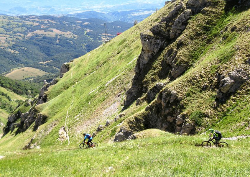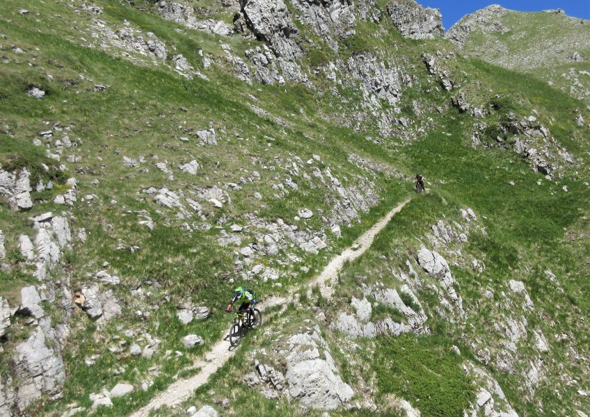 Spostandosi a Campo Imperatore il tracciato dei Tre Valloni, contraddistinto dal grande panorama, non sarebbe un sentiero complicato, tuttavia la pendenza molto accentuata, il fondo ghiaioso e l’esposizione, alzano notevolmente le difficoltà, rendendolo adatto a biker esperti.