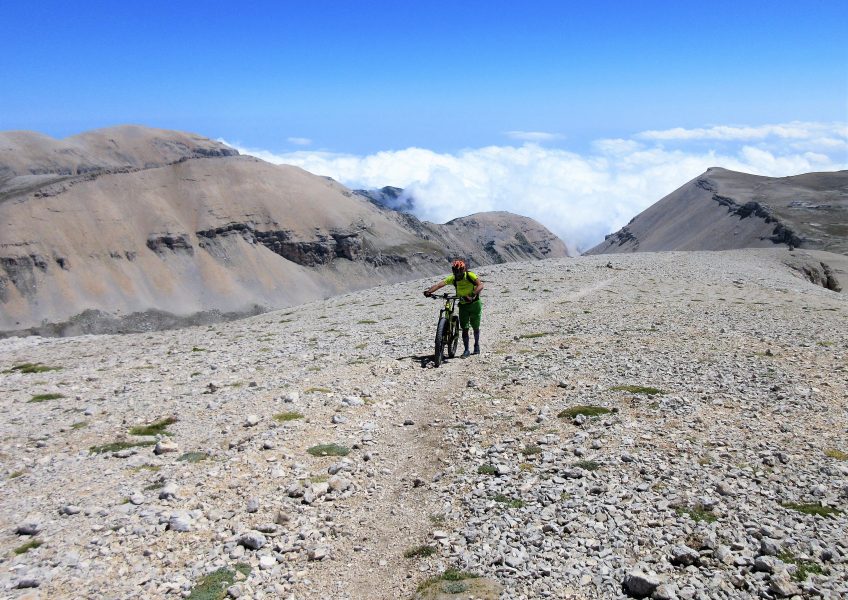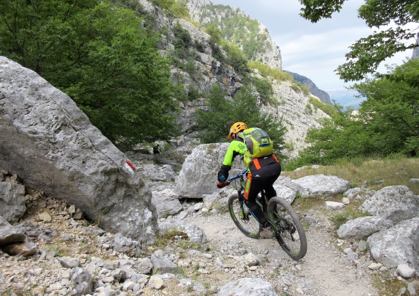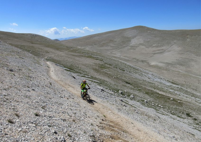 Premesso ciò: la salita è impegnativa, in particolare il tratto da Guado di Coccia alla Tavola Rotonda che affrontato in portage, richiede discreto impegno fisico; la discesa tecnica e difficoltosa, non lascia tregua, richiede buone abilità di guida, bisogna rimanere sempre concentrati, per le pendenze, per il percorso che si sviluppa su fondo prevalentemente smosso e inconsistente, con tornanti stretti su zone rocciose.