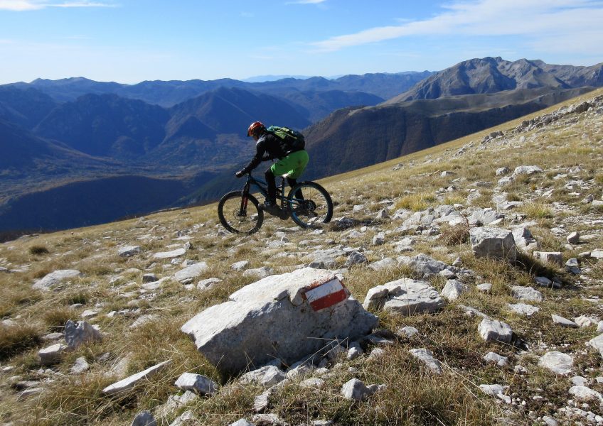 ed intercettato il single-track, sempre roccioso, si inizia a zigzagare su zona prativa,
