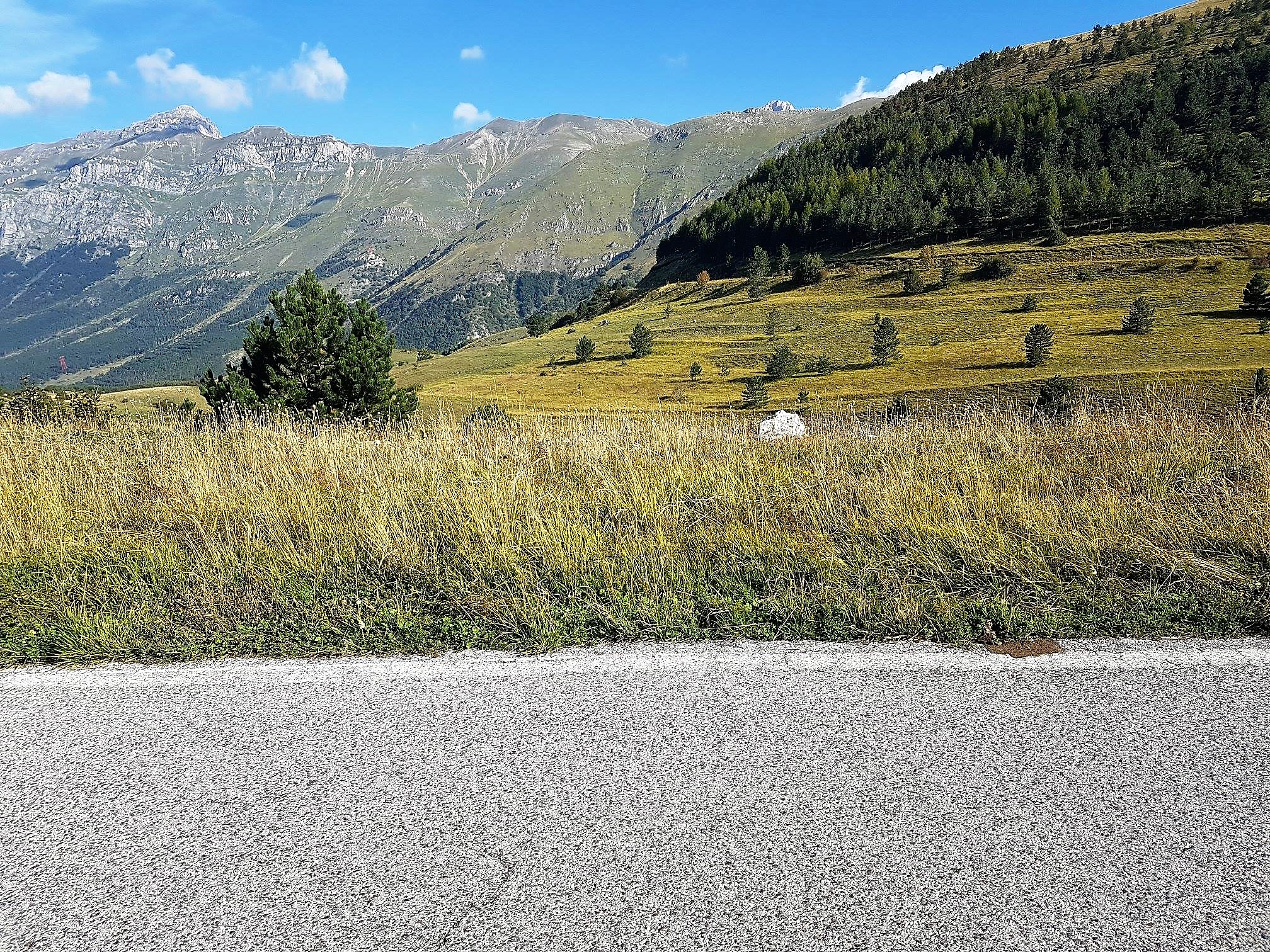 Giunti a Fonte Cerreto (Assergi), la funivia ferma per manutenzione, obbliga a variare il programma decisamente interessante, facendo accollare 26 km di bitume, che tra il continuo variare di scorci panoramici non annoia.