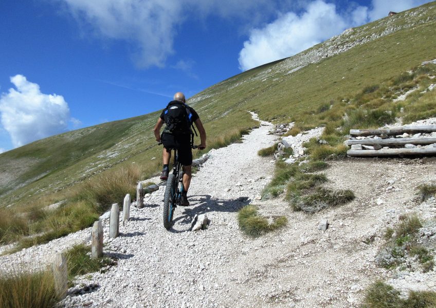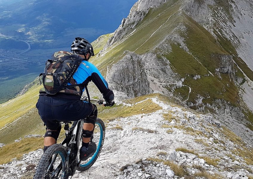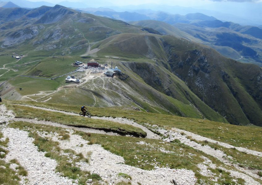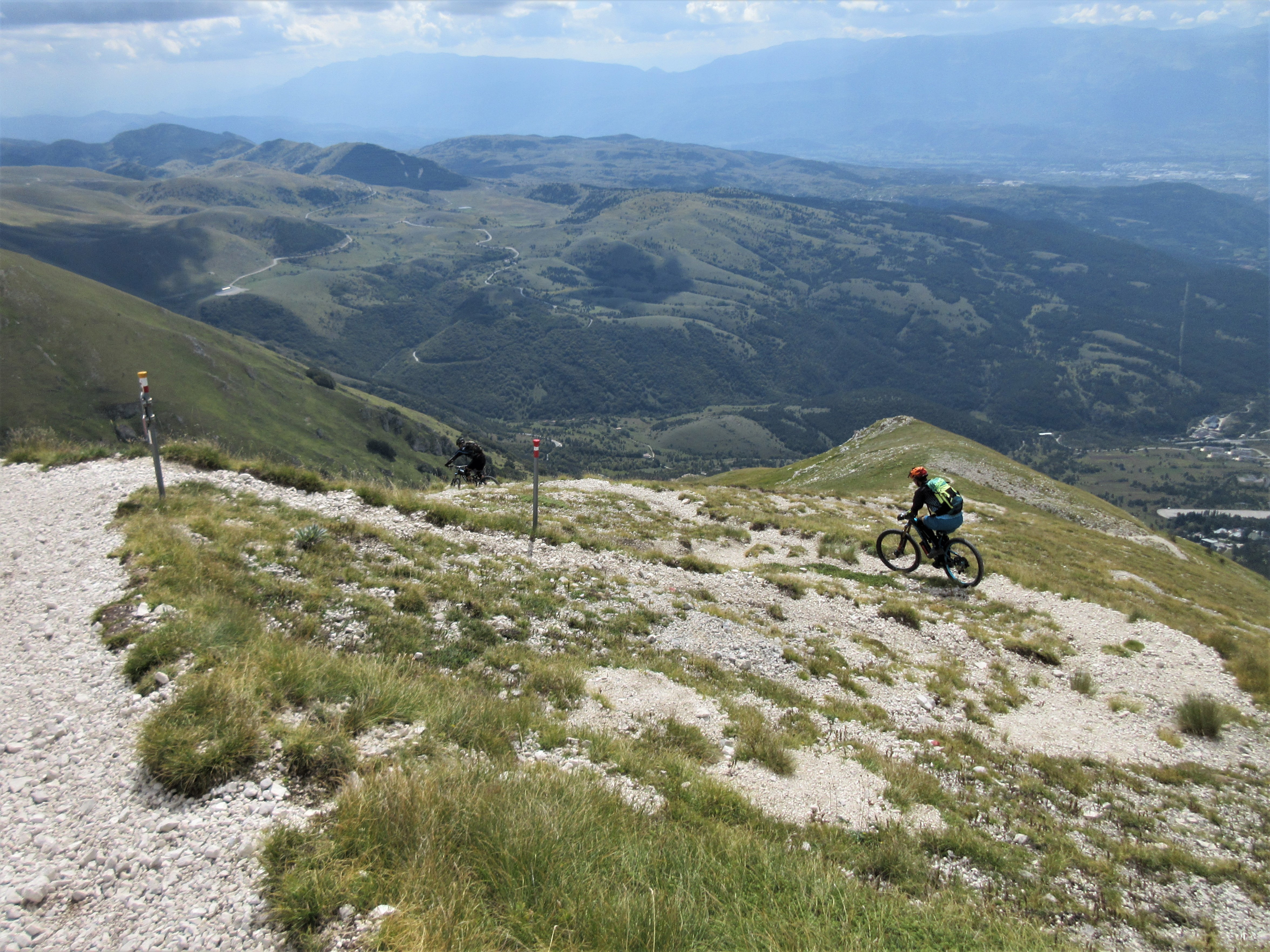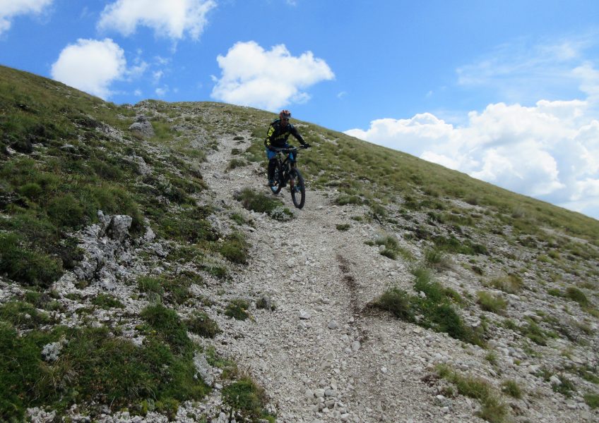 Itinerario sul versante aquilano del Gran Sasso, che con partenza dall’arrivo della seggiovia di Campo imperatore, sale al rifugio Duca degli Abruzzi, percorre il crinale del monte Portella, raggiungendo il valico omonimo per poi scendere sul vallone della Portella. È un trail dalla doppia natura: arroventata, insidiosa e tecnica, sulla dorsale, richiede padronanza del mezzo, per il severo mix di tratti rocciosi, esposti, in forte pendenza e di un breve punto scosceso da superare a piedi, in assenza di vertigini, le difficoltà si affievoliscono, entrando nel vallone della Portella, percorrendo le interminabili e divertenti sequenze di tornanti.