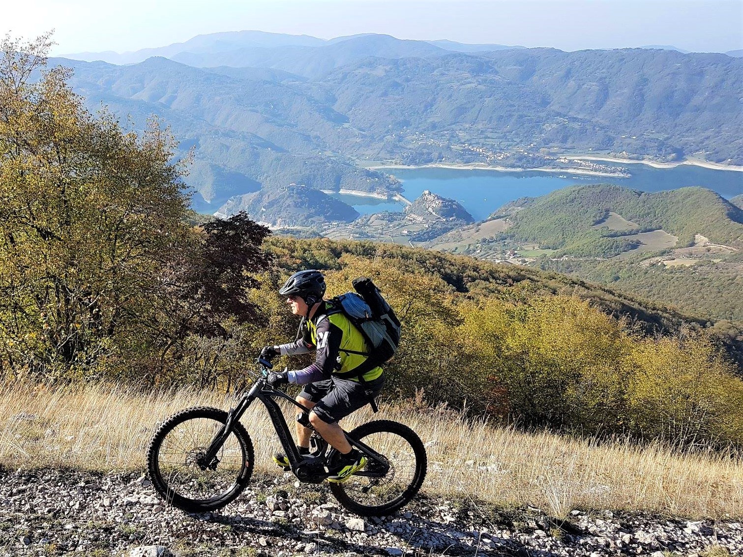 Durante i numerosi tour effettuati sui Monti Carseolani, girovagando lungo gli straordinari single track, curati dai trail-building del Team Carsolibikezone, le due vette maggiori, Navegna e Cervia, separate dalle Gole dell’Obito, strizzavano l’occhiolino stuzzicando. Qualche indecisione, poi è bastata una scintilla, un pizzico di fiducia per ritrovarsi a transitare sulle sponde del Lago del Turano, superare il borgo medievale di Castel di Tora abbarbicato sul colle, definito “il presepe sulle acque” e raggiungere il valico Forca di Vallecupola.