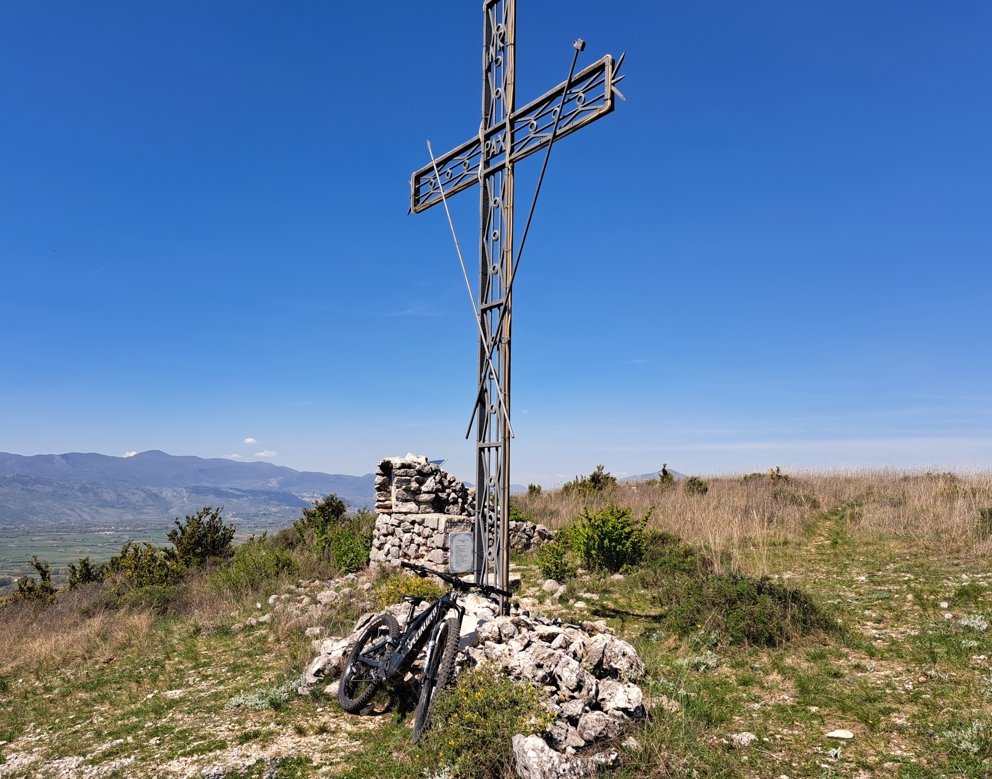 Usciti dal divertente muro, uno sterrato pianeggiante di collegamento ci porta all’imbocco della “Porcilaia”, un tratturo che si inerpica in forte pendenza, dove è facile perdere aderenza al posteriore e si è costretti a spingere. Intercettato il sentiero del “Prigioniero” si continua su pendenze umane, fino a raggiungere di nuovo la dorsale per arrivare all’altarino votivo e alla croce dedicati a Santa Barbara (già in precedenza incrociato).